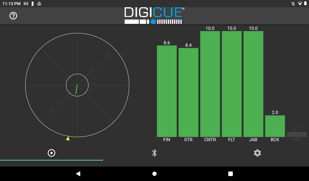 Der DigiCue BLUE überwacht Ihren Schlag ständig auf Unstimmigkeiten und gibt Ihnen durch leises Vibrieren sofort Feedback, wenn er einen Fehler in Ihrem Schlag misst. Darüber hinaus sendet es Statistiken zu jedem Schuss drahtlos an die DigiCue-App auf Ihrem Smartphone oder Mobilgerät.