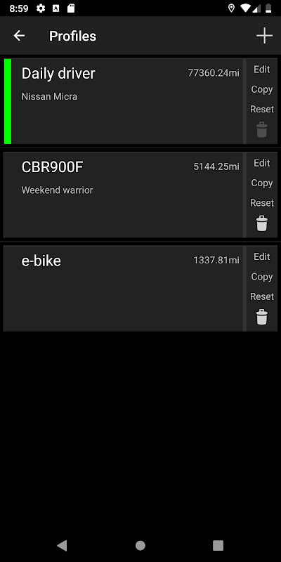 * Profile - Profile für verschiedene Tätigkeiten oder Verkehrsträger erstellen und halten alle ihre Einstellungen und Werte trennen