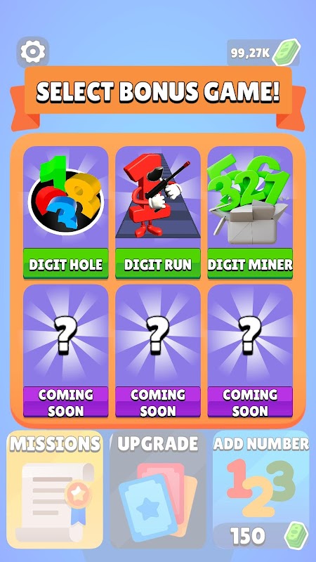 Digit Fight enthält mehrere Spiele. Dein Spielgeld kannst du in allen anderen Spielen verwenden. So kannst du mehrere Spiele gleichzeitig spielen!