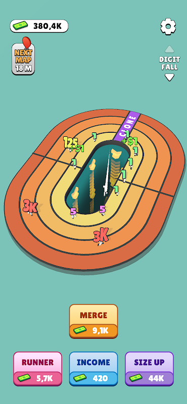 Begeben Sie sich mit Digit Loop auf ein spannendes numerisches Abenteuer! Beobachten Sie, wie ziffernförmige Läufer durch eine faszinierende Schleife rasen und Ihnen mit jeder Drehung wertvolle Münzen einbringen. Füge diese schnellen Ziffern zusammen und verbessere sie, um neue Fähigkeiten freizuschalten und deine Einnahmen zu steigern. Schaffst du es, den ultimativen Loop zu erstellen und ein Loop-Tycoon zu werden? Tauchen Sie noch heute in die süchtig machende Welt von Digit Loop ein und beginnen Sie, Ihren Weg zum Reichtum zu zählen!