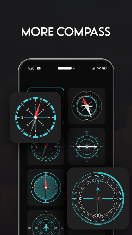 # Verwenden Sie mehrere Kompasse wie Standard-, Digital-, Qibla-, Kamera-, Satelliten-, Karten-, Luftfahrt- und Vintage-Kompasse