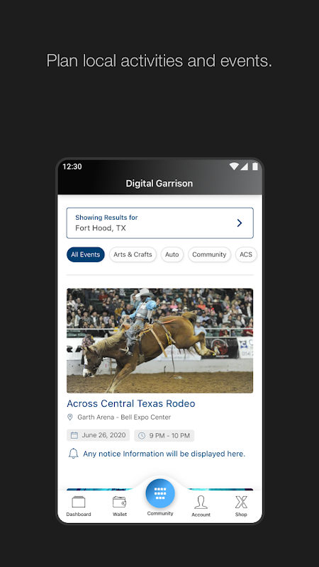 Entdecken Sie alle Vorteile, die Ihr Armeeposten zu bieten hat. wie Restaurants, Veranstaltungen, Geschäfte, Kliniken, Aktivitätszentren und Direktionen. Navigieren Sie zu Einrichtungen auf dem Posten und lassen Sie sich in Echtzeit über Torschließungen oder andere wichtige Installationsinformationen informieren – alles von Ihrer Handfläche aus.