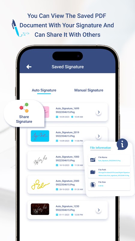 * Automatische Signaturen zum Hinzufügen und Teilen mit anderen.