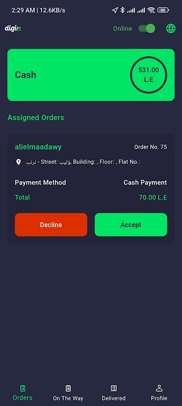 Der Ort, der keine Lieferung hat Digix Booking hat eine Lieferung vorgenommen