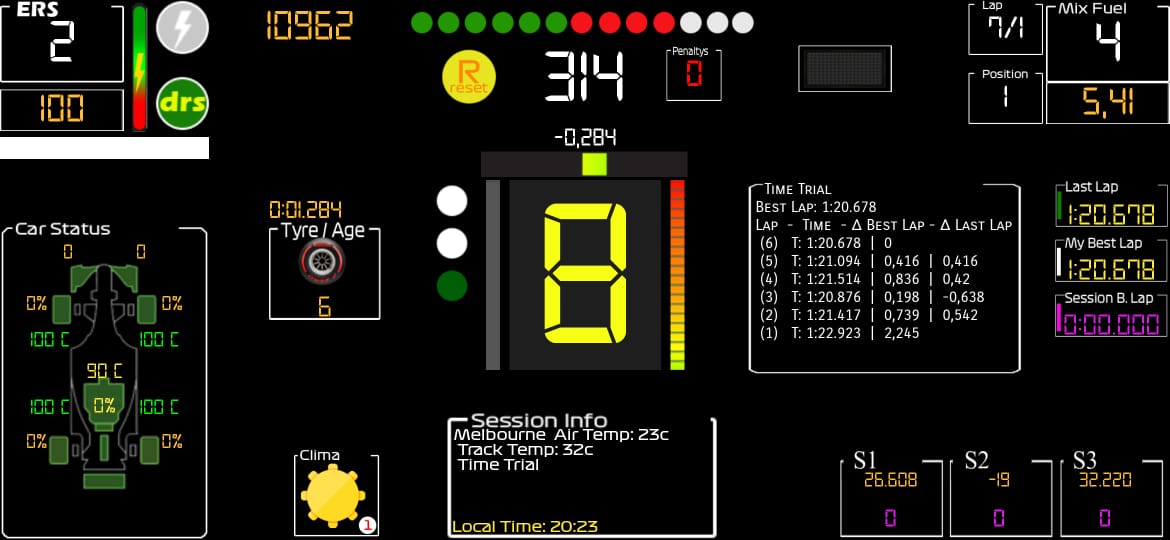 Have in front of you the most complete Dashboard for racing games, all the information regarding your car.