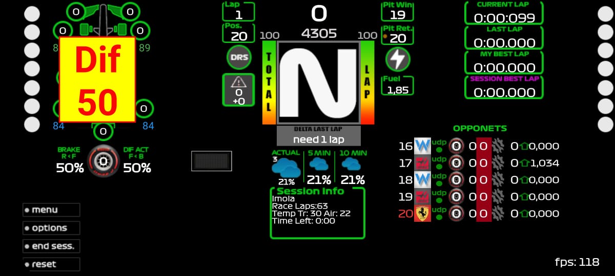 Haben Sie das vollständigste Dashboard für das Rennspiel vor sich, alle Informationen zu Ihrem Auto.