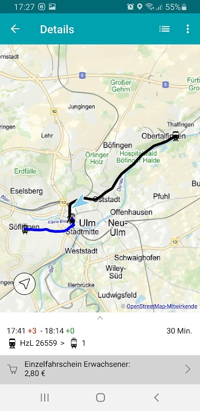 Das kostenlose Auskunftssystem für den öffentlichen Personennahverkehr in Ulm.
