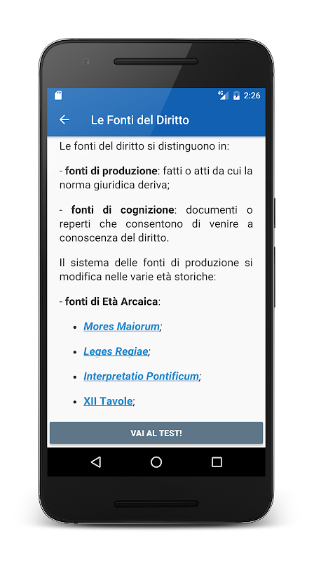 →TEST: più di 500 domande divise in test parziali, totali, facili, difficili… Mettiti alla prova e verifica la tua preparazione! Sfida i tuoi amici a chi fa più punti, ma fai attenzione, hai solo tre vite!
