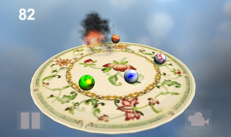 Наклоняя устройство в разные стороны нужно постараться удержать мячи на тарелке.