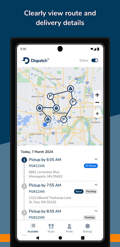 Dispatch arbeitet mit Lieferfahrern zusammen, die Wert auf Zuverlässigkeit, Kommunikation und Sorgfalt legen. Sie sind Teil eines wachsenden Liefernetzwerks, das Sie mit passenden Aufträgen für Ihr Fahrzeug, Ihre Fähigkeiten und Ihre Ziele verbindet.