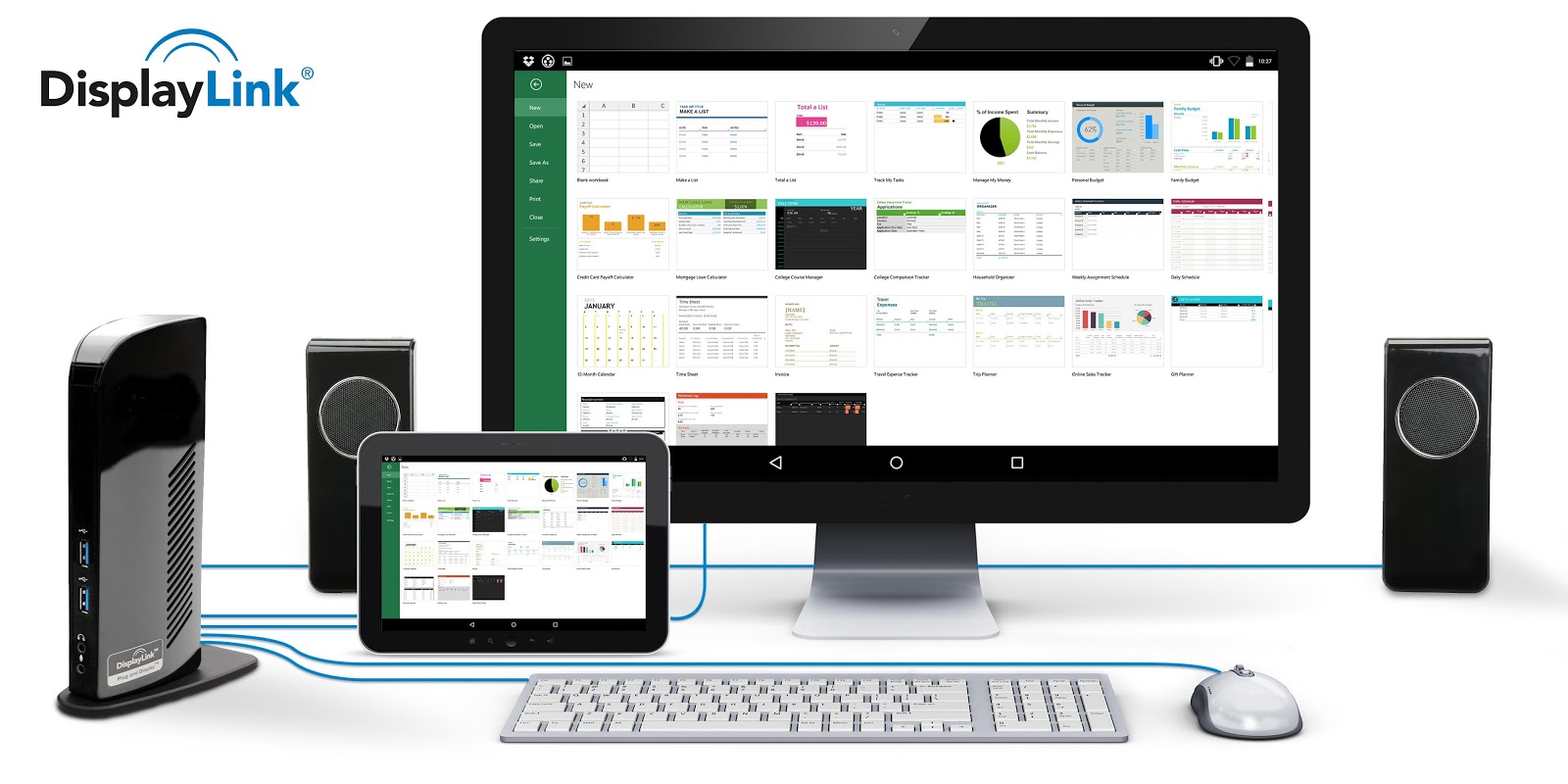 Bei Verwendung mit einer DisplayLink-fähigen Dockingstation können ein einzelner größerer Monitor, eine Tastatur und eine Maus an das Android-Gerät angeschlossen werden, was die Interaktion mit Produktivitäts-Apps erleichtert.