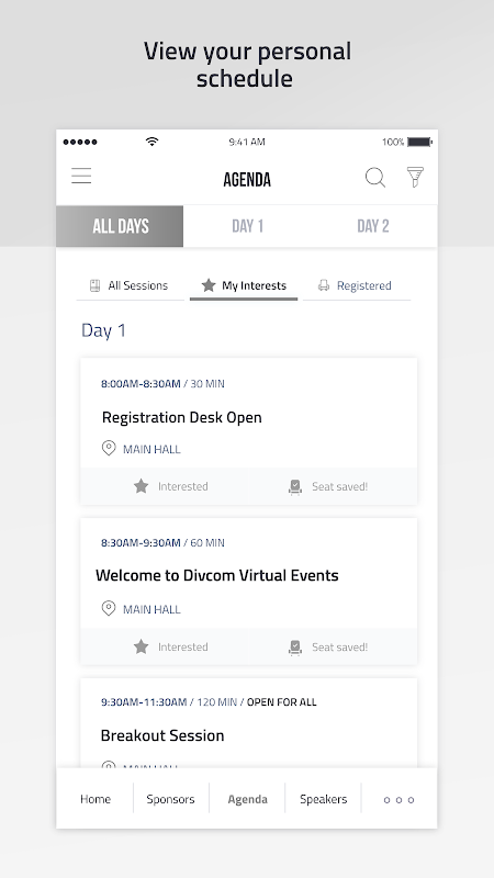 With the Divcom app, users can attend sessions, keynotes, special events, and connect with peers and sponsors.