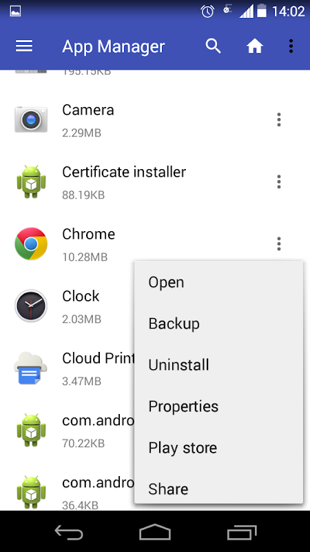 Application manager of DM File Explorer allows to open,uninstall,