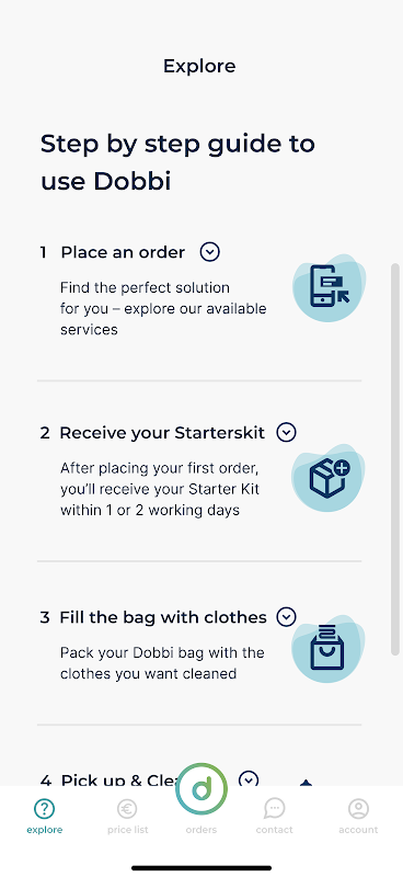 Dobbi ist die clevere Lösung für Ihre Trockenreinigungsbedürfnisse: Ihre Kleidung wird zu Hause abgeholt und sauber zurückgegeben, ohne dass Sie das Haus verlassen müssen! Dank unserer einfachen App können Sie ganz einfach einen Abhol- und Liefertermin zu einem für Sie passenden Zeitpunkt vereinbaren.