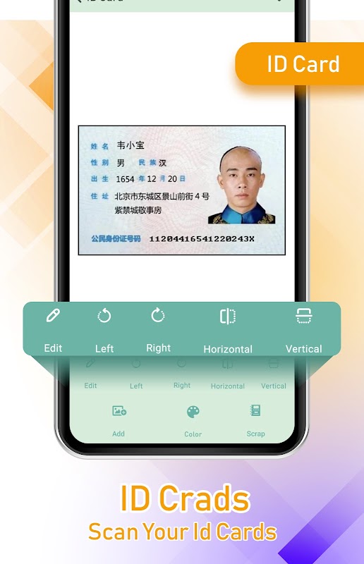 Using an ID card-free scanner and doc scan, scans ID cards, passports, driver's licenses, and other identity papers in seconds and stores them on the device.