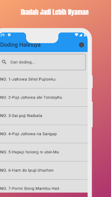 Im Originalbuch ist Doding Simalungun mit Musiknoten und numerischen Notizen ausgestattet. In zukünftigen Updates werden wir die Funktionen der Doding-Anwendung mit Doding-Halleluja-Musiknoten und Doding-Halleluja-Zahlennoten noch vollständiger machen