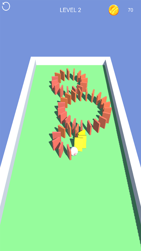 Zielen und schlagen Sie den Ball auf einen Dominostein, um alle Dominosteine umzuwerfen und einen Dominoeffekt zu erzeugen.