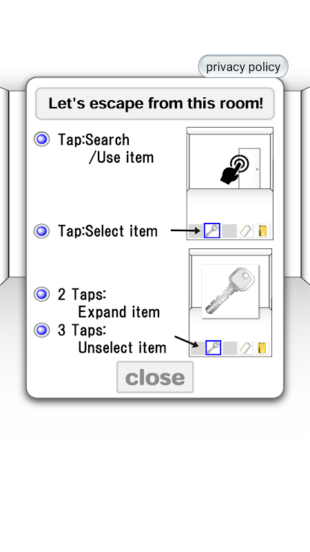 - Tippen: Gegenstand suchen/benutzen.