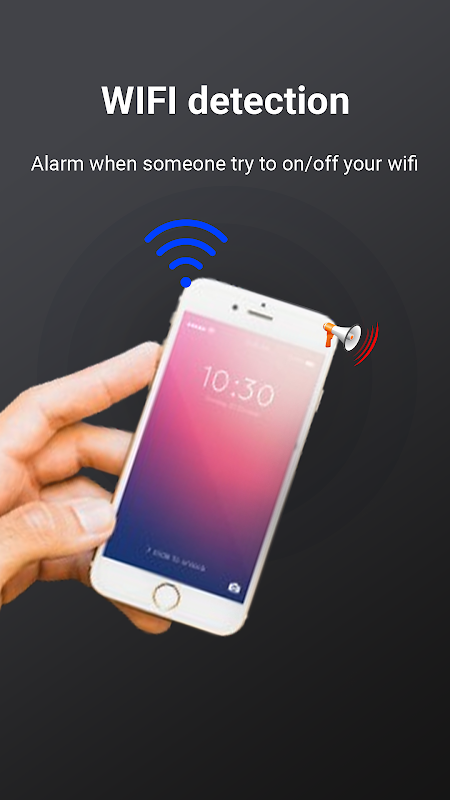 Behalten Sie mit dem WLAN-Alarm die Kontrolle über die Netzwerkverbindungen Ihres Geräts. Lassen Sie sich benachrichtigen, wenn Ihr Telefon eine Verbindung zu einem Wi-Fi-Netzwerk herstellt oder die Verbindung trennt, mit „Don't touch my phone alarm 2024“.