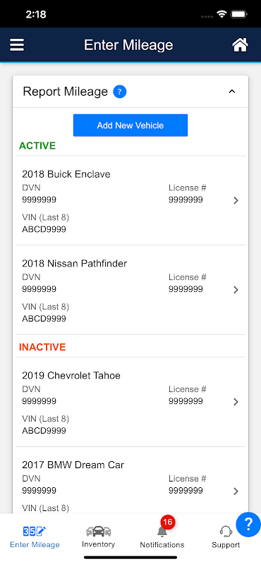 • B & P - Ermöglicht dem Benutzer die für ihre aktive und inaktive Fahrzeuge anzeigen, bearbeiten und löschen Sie neue und bestehende Fahrtenbuch