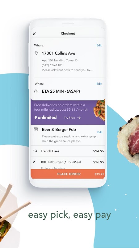 Öffnen Sie einfach die App, geben Sie Ihre Adresse, wählen Sie Ihr Lieblingsrestaurant und wählen Sie ihre besten grub! Alle gelieferten zu Ihnen nach Hause!
