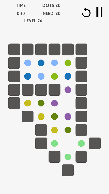 Füge Punkte der gleichen Farbe zusammen, um sie zu entfernen. Um zu gewinnen, müssen Sie eine bestimmte Anzahl von Punkten entfernen. Achtung! Es ist nicht immer obligatorisch, jeden Punkt im Level zu entfernen, nur die benötigte Menge.