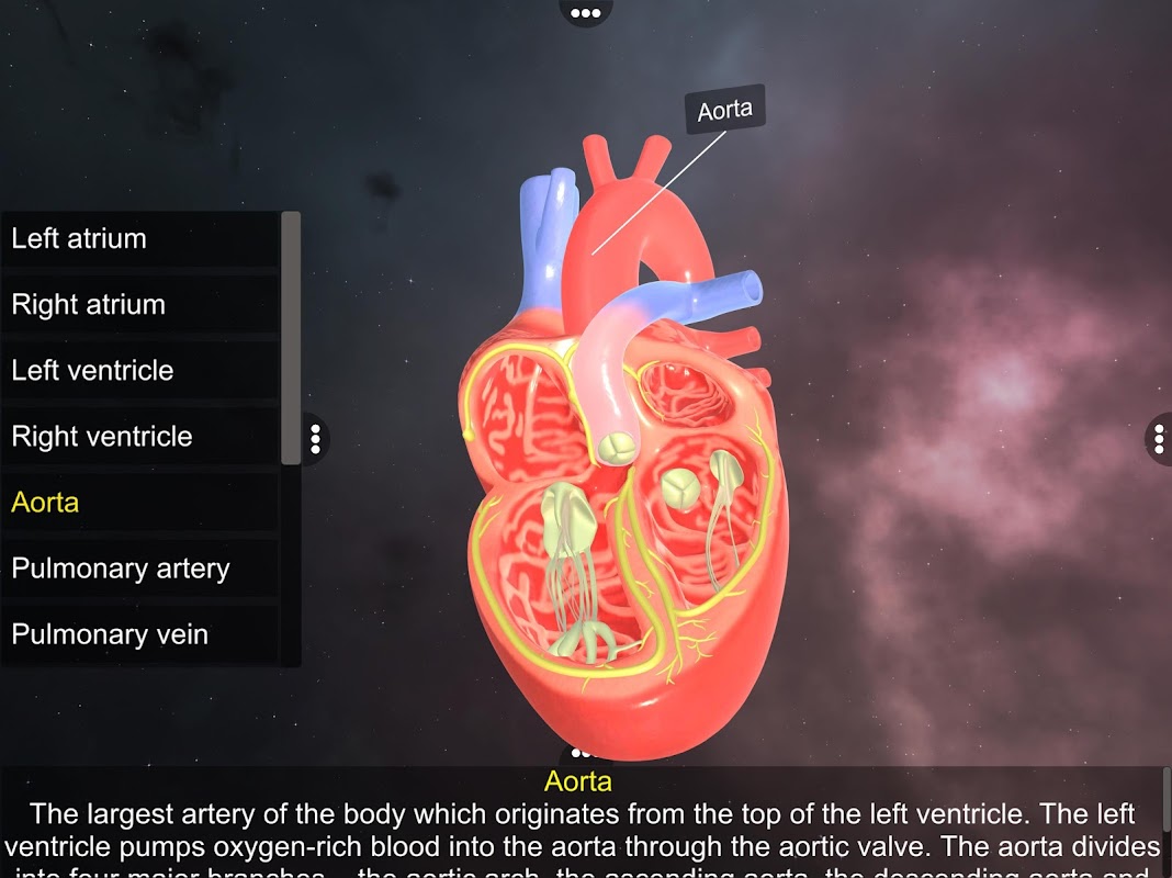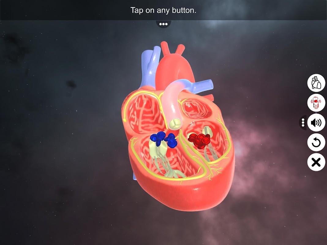 Die App „Doppelte Zirkulation“ liefert zunächst Details zur inneren Struktur des menschlichen Herzens im 3D-Modell und erläutert dann die Durchblutung dieser Teile. Die App hat zwei Ebenen; Die erste erklärt die Struktur des Herzens, während die zweite Ebene die doppelte Zirkulation behandelt.