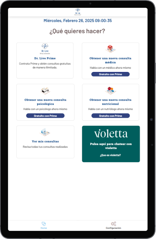Dr. Live ist die Telemedizin-Anwendung, die den Zugang zu medizinischen, psychologischen und Ernährungsberatungen bequem von zu Hause, vom Büro oder von überall aus ermöglicht. Durch Videoanrufe in Echtzeit können Sie sich von Allgemeinärzten, Psychologen und zertifizierten Ernährungsberatern betreuen lassen, ohne reisen oder stundenlang warten zu müssen.