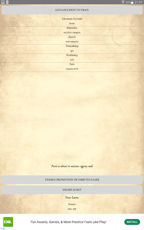 Draculas Wut kann ein langes (aber sehr lustiges) Spiel sein. Diese App zielt darauf ab, die Dinge in Form einer Spielerhilfe für den Dracula-Spieler zu beschleunigen und ist für die 3. oder 4. Auflage des Brettspiels Fury of Dracula bestimmt.