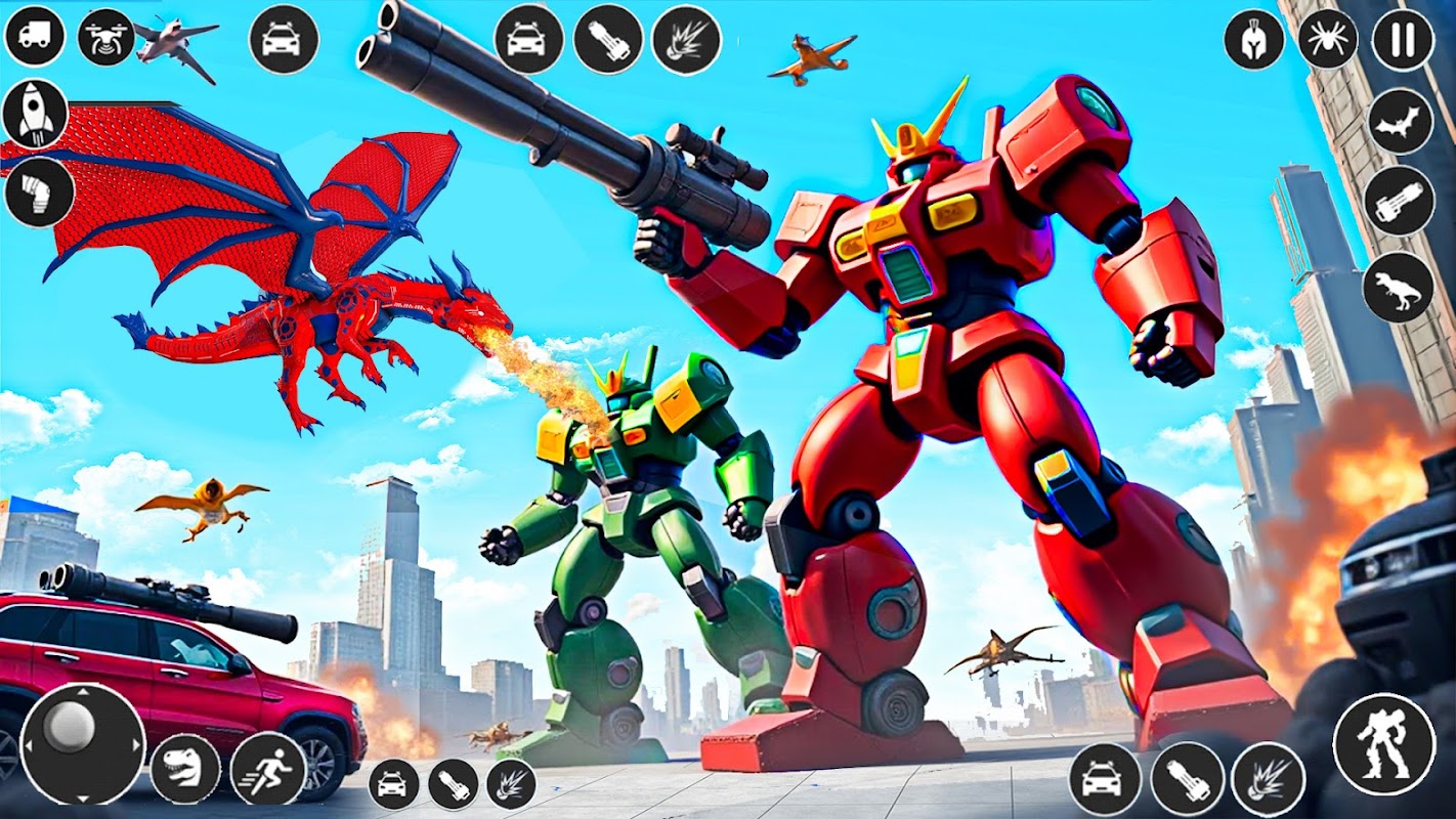 In diesem Spiel verwandelst du deinen Roboter von einem schnellen Auto in einen wilden Drachenroboter mit großen Flügeln und scharfen Klauen. Der Drachenroboter kann hoch in den Himmel fliegen und Feuer speien, um Feinde zu besiegen. Du steuerst den Roboter sowohl im Auto- als auch im Flugdrachenmodus, was jede Mission spannend und unterhaltsam macht.
