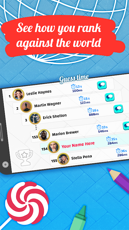 At the end of the game, you will be listed in the leaderboard along with your friends and thousands of players. Quick guess will make you appear on the top of the leaderboard. All your friends’ positions will be highlighted on the leaderboard, making it hustle free for you to check your position among friends.