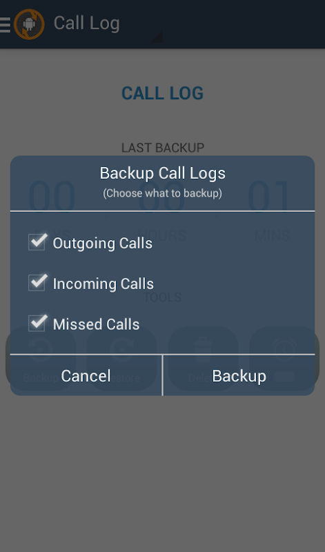 Easily backup your phone's Call logs, SMS, Contacts as well as installed apps.
