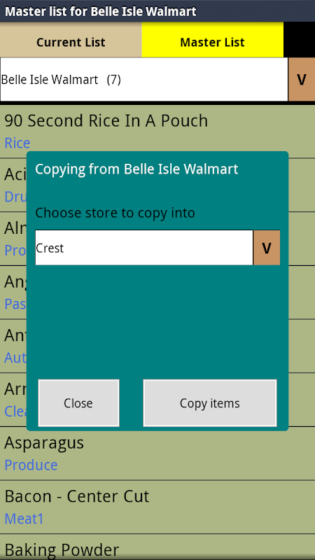 Select the store that you want to shop and select the items that you need this week from the master list. You can add new items quickly on your device or you can create a list on your computer that DroidShop can import. The imported list can even add new items to the master list for each store, as well as adding new stores. Spouse, partner, or significant other already headed to the store? No problem, just send the Droidshop list on your phone to them. It only takes a minute to update the list(s) in this in way.