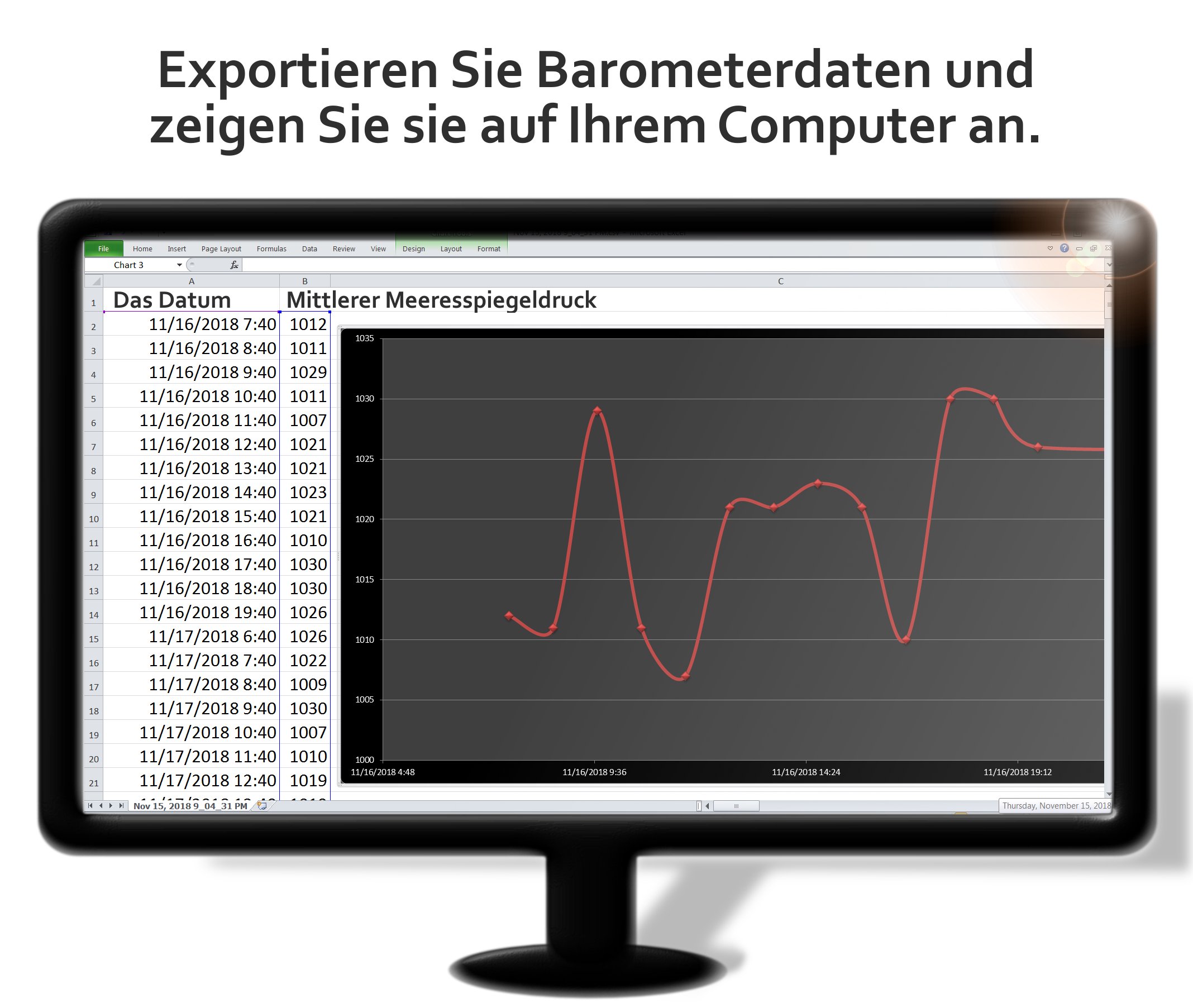 Schnelle Änderungen des Luftdrucks gehen normalerweise erheblichen Wetteränderungen voraus. Verwenden Sie die von dieser App gemessenen Luftdrucktendenzen mit anderen atmosphärischen Daten (z. B. Wolkenmuster und Temperaturänderungen), um die Verbesserung oder Verschlechterung der Wetterbedingungen vorherzusagen.