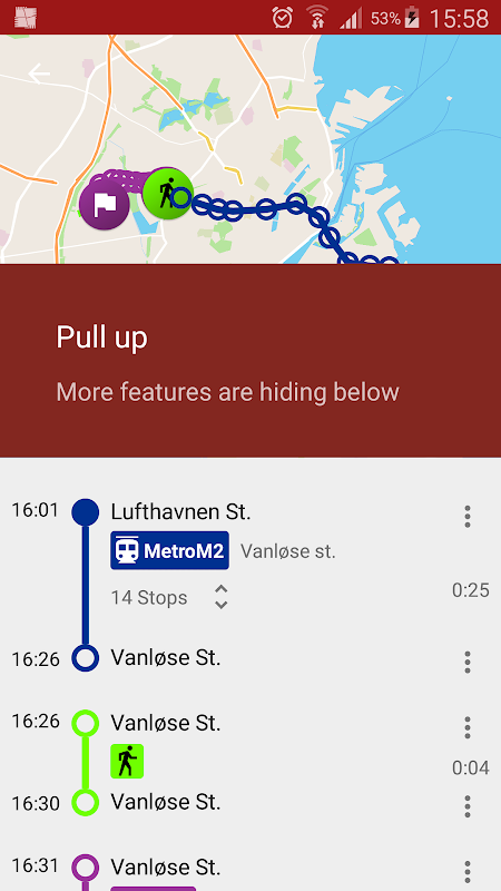 ► Live navigation: the service provides step-by-step support in real time displayed on a map of the transport network. Do not get lost in the DSB & Métro.