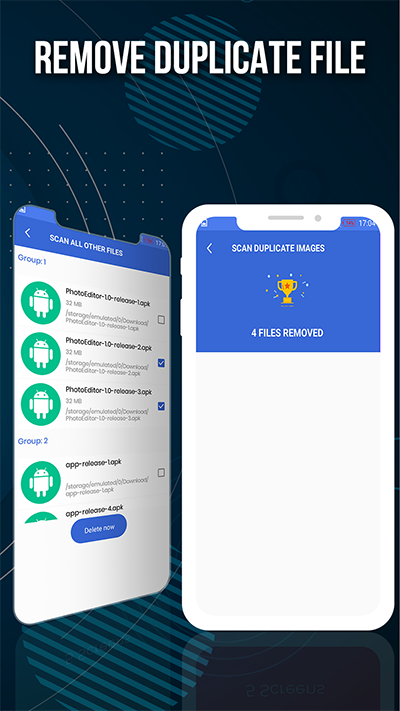 Duplicate File Remover – Duplicate File Finder ist eine leistungsstarke App zum Suchen und Entfernen von doppelten Dateien, die viele Arten von doppelten Dateien scannt und löscht.