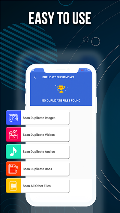 Duplicate File Remover & Duplicate File Finder scannt und zeigt doppelte Fotos, doppelte Audios und doppelte Videos an.