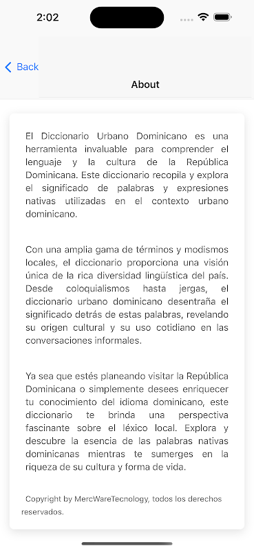 Durd ist eine mobile Anwendung, die Benutzern einen schnellen und einfachen Zugriff auf ein dominikanisches Stadtwörterbuch ermöglicht. Mit der App können Benutzer nach Wörtern und deren Bedeutung im Zusammenhang mit der in der Dominikanischen Republik verwendeten Sprache und Umgangssprache suchen.