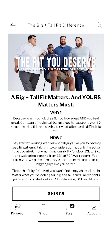 Mit unserer DXL Big + Tall App können Sie jetzt: