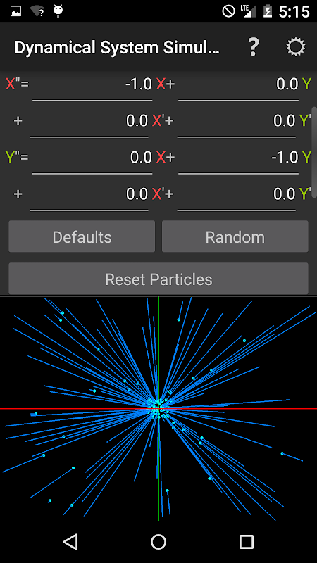 Dynamical System Simulator animiert 2D- und 3D-Differentialgleichungssysteme erster und zweiter Ordnung in Echtzeit. Beobachten Sie, wie sich animierte Partikel durch den Weltraum bewegen und eine Spur hinterlassen. Ideal zum Überprüfen von Neigungsfeldern, Phasenporträts und zum Erlangen eines intuitiven Verständnisses dynamischer Systeme. Kenntnisse über Differentialgleichungen werden vorausgesetzt, aber der Hilfebildschirm weist Sie auf zusätzliche Informationsquellen hin. Die App ist mit mehreren bekannten dynamischen Systemkonfigurationen vorinstalliert, die aus der Navigationsleiste ausgewählt werden können. Parameter für einen bestimmten Systemtyp können randomisiert werden.