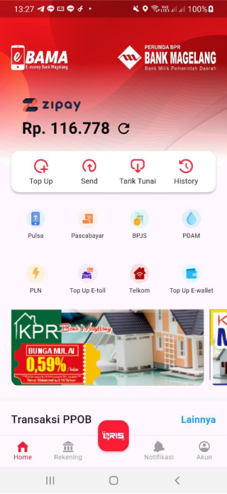 E-BAMA ist eine mobile Anwendung, die aus einer Zusammenarbeit zwischen Zipay und BPR PERUMDA Magelang hervorgegangen ist