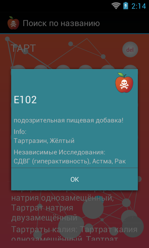 This is app for quick discovery if given product or food will not affect you health. Essential mode is quick typing of E-numbers from product description. So, if you see the following E codes in product description: E103, E104, E927, then you start entering the sequence of numbers: 103 104 927... using brown buttons. The app will check each E number against its database of dangerous and suspicious food additives. Immediately after detecting if one of entered E numbers is dangerous the application will show warning window with quick description of this food additive.