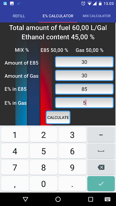 This APP has three different calculators for people who want to use ethanol mixtures in their cars.