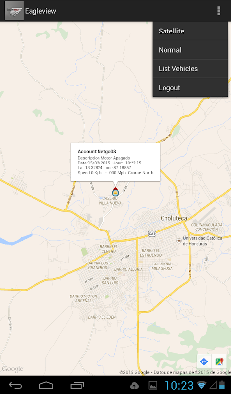 - Genaue Standort des Fahrzeugs in einem Foto von google Erden begleitet von einer Karte und einem anderen Mapping Möglichkeit, sich google Erden voll national verwiesen.