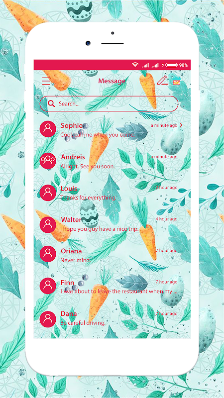 This SMS Message Easter theme free will refresh your day with Pink Easter Theme go message, Cute Easter Bunny SMS themes and colorful Easter Egg Rabbit SMS message whenever you look at the screen!