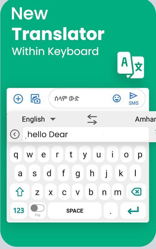 Easy Amharic typing keyboard is for Amharic lovers who want to use “Amharic to English translation” through default English keyboard. Now you can chat on social media, it's easy to use, you just write in Roman English and easy Amharic keyboard app and Amharic keyboard online will change it into Amharic language.