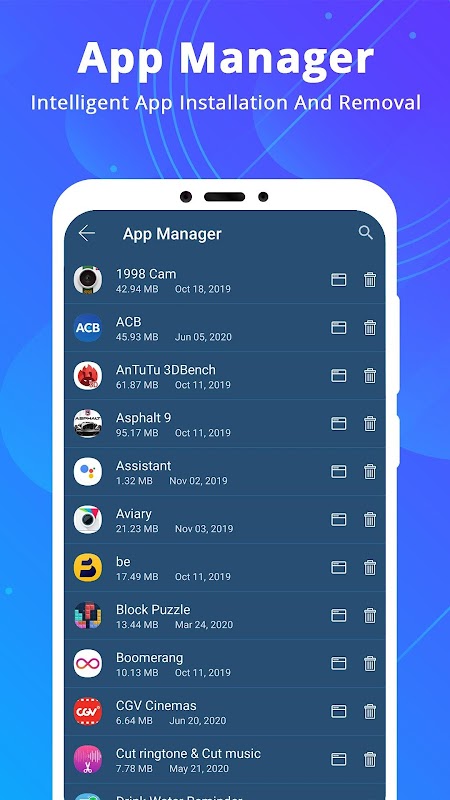 Junk file cleaner helps clear cache and junk files that take up memory and storage space, help improve and optimize the speed and performance of your phone.