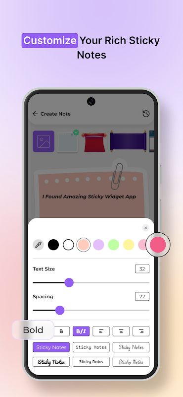 Transparenzeinstellungen verleihen Ihren Haftnotizen eine weitere Ebene der Vielseitigkeit. Durch Anpassen der Transparenzstufe können Sie die perfekte Balance zwischen Lesbarkeit und Einpassung in den Startbildschirm Ihres Geräts finden. Diese Funktion stellt sicher, dass Ihre Notizen leicht zugänglich bleiben und sich nahtlos in das von Ihnen gewählte Hintergrundbild oder Thema integrieren.