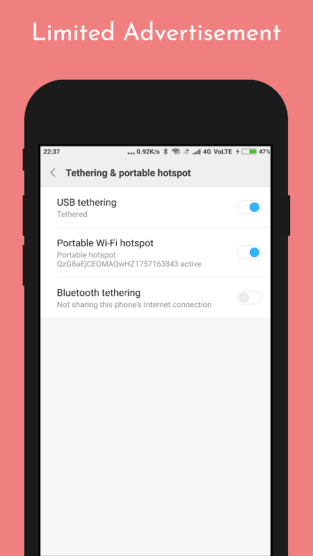 Easy USB Tethering is easy to use an application to easily share your network or internet with your PC or any other device that you want. By using Easy USB Tethering you can easily share your network internet and data with your personal computer, Laptop, Television or any other device that you want. Easy USB Tethering is free to use application which is very small in size and very responsive. Easy USB Tethering allows you to automatically tether your phone network with your personal computer or Laptop. The layout of this application is very responsive and beautiful. Easy USB Tethering is the application that does not require much space due to its optimized compression. This application contains a very limited number of advertisement. By using Easy USB Tethering you can share your network internet by just clicking a button. It is very easy to use this application.
