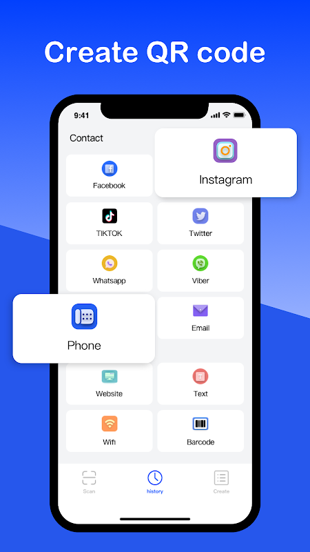 QR-Code-Scanner, Barcode-Reader-App verfügt auch über eine QR-Code-Generatorfunktion, mit der Sie ganz einfach Ihre eigenen verschiedenen Arten von QR-Codes generieren können.